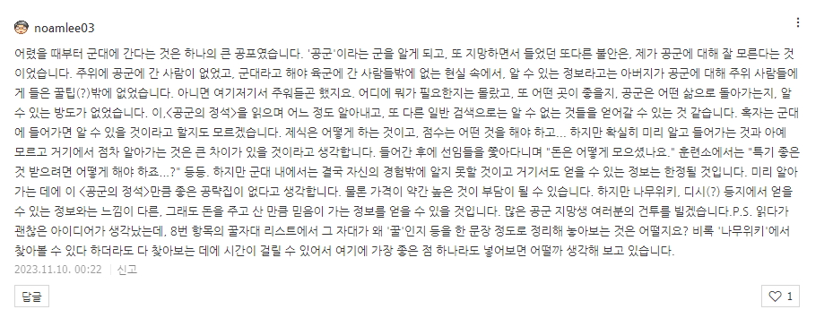 7. 미리 준비하여 남들보다 유리한 위치에서 공군 생활을 시작하고 싶으신 분