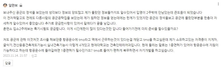 11. 공군 입대를 앞두고 걱정이 많으신 분